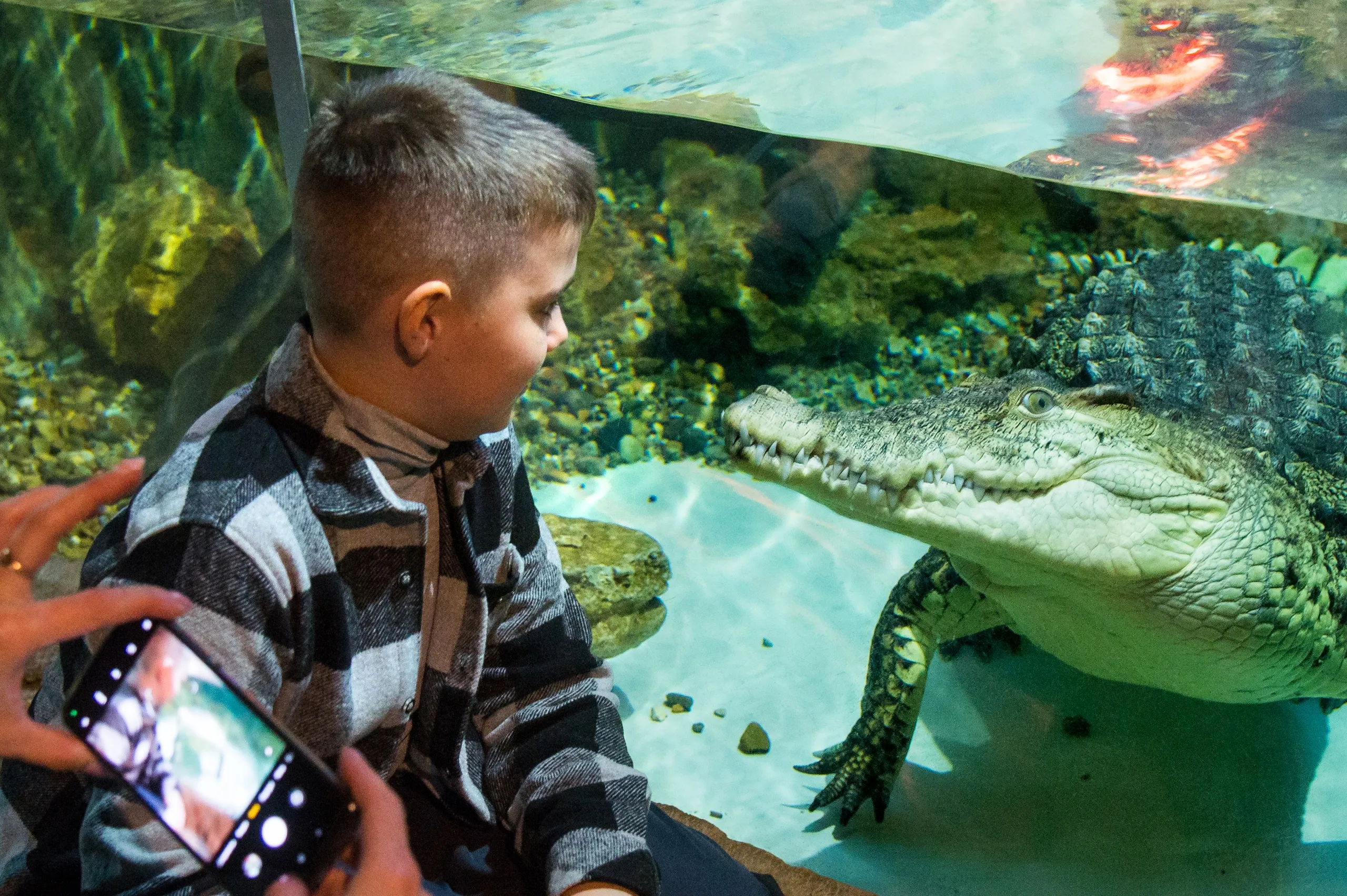 Прогулка среди живых экспозиций: акулы, скаты, морские ангелы, пираньи и даже амфибии. В террариумах можно увидеть крокодилов, змей, варанов и других древних существ. Это — настоящее путешествие сквозь миллионы лет эволюции!