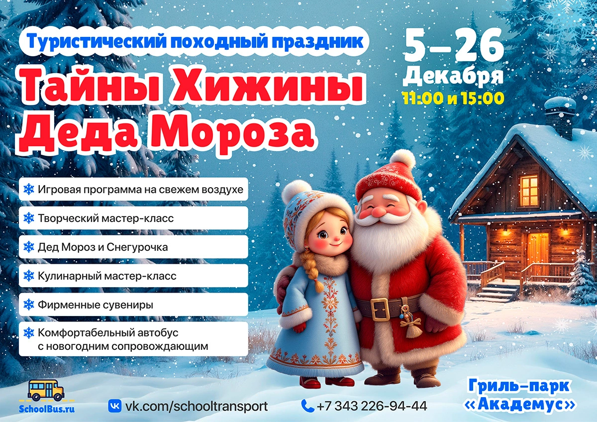 Путешествие начнётся у новогоднего автобуса, где ребят встретит добрый сопровождающий. Он расскажет, что где-то неподалёку, в Екатеринбурге, остановился по своим волшебным делам сам Дед Мороз — и именно туда отправится наша весёлая компания.